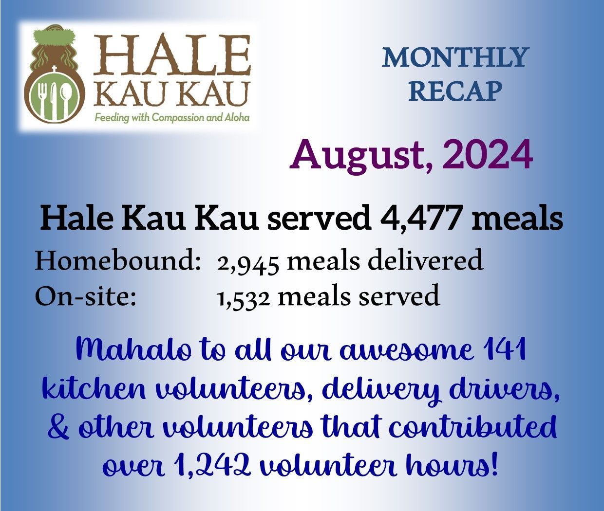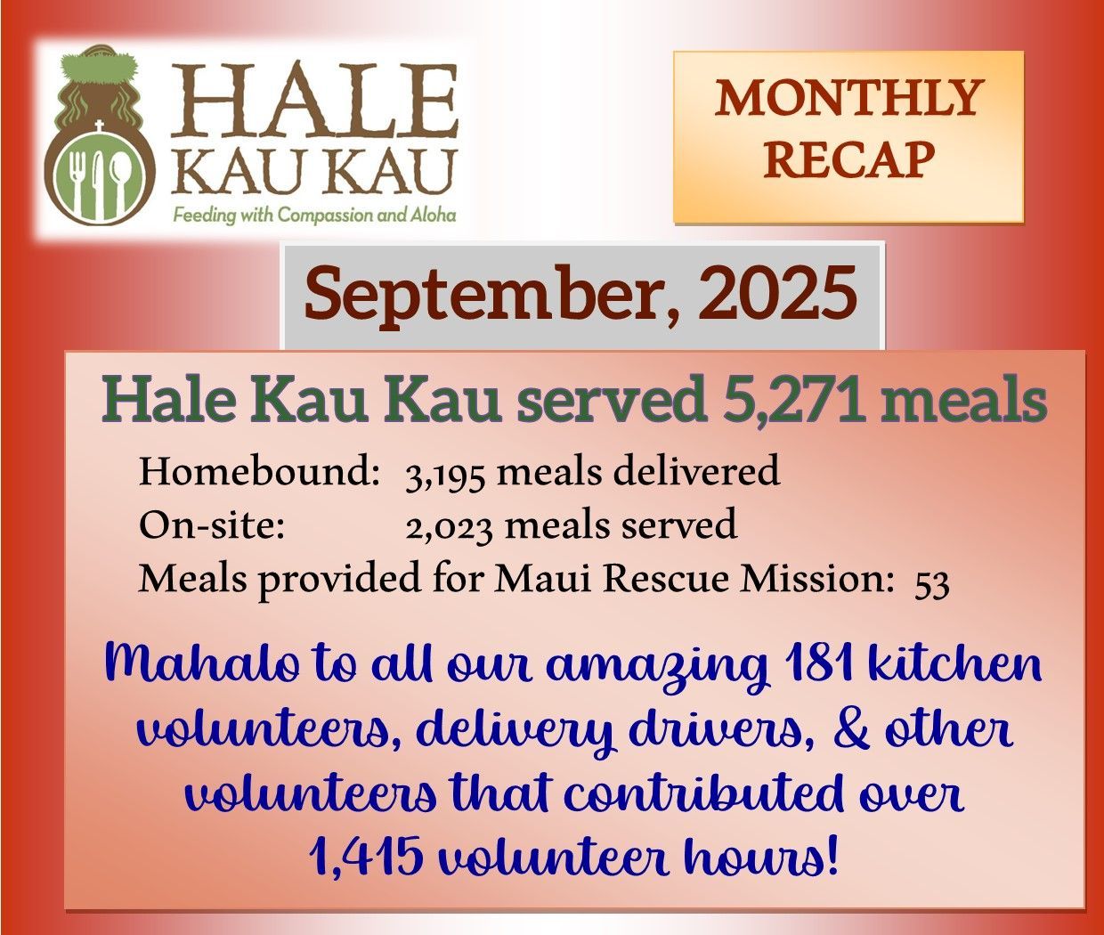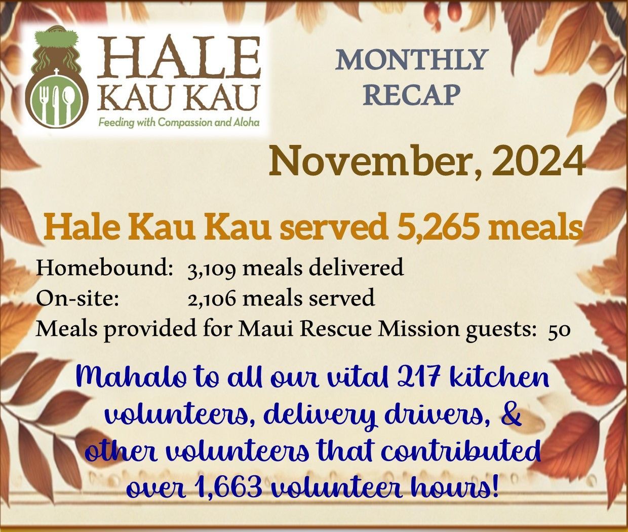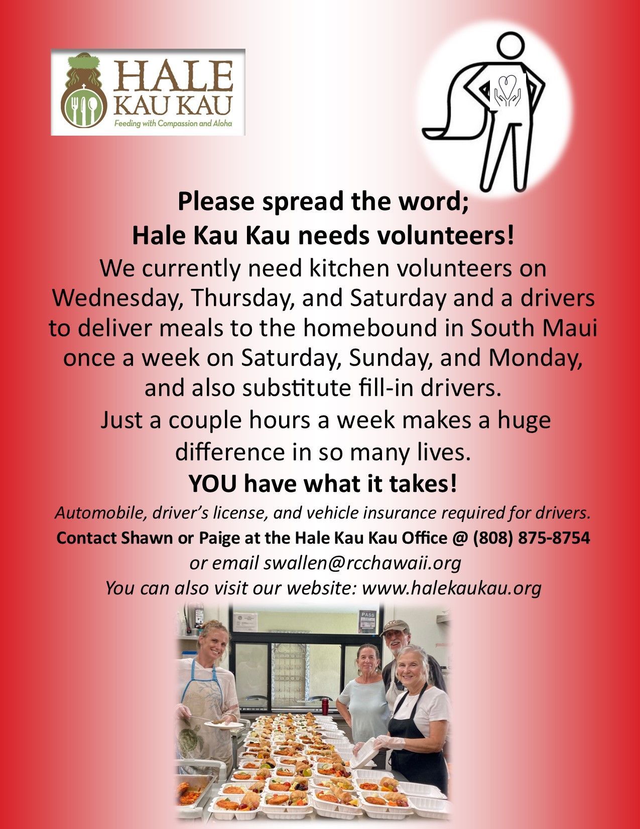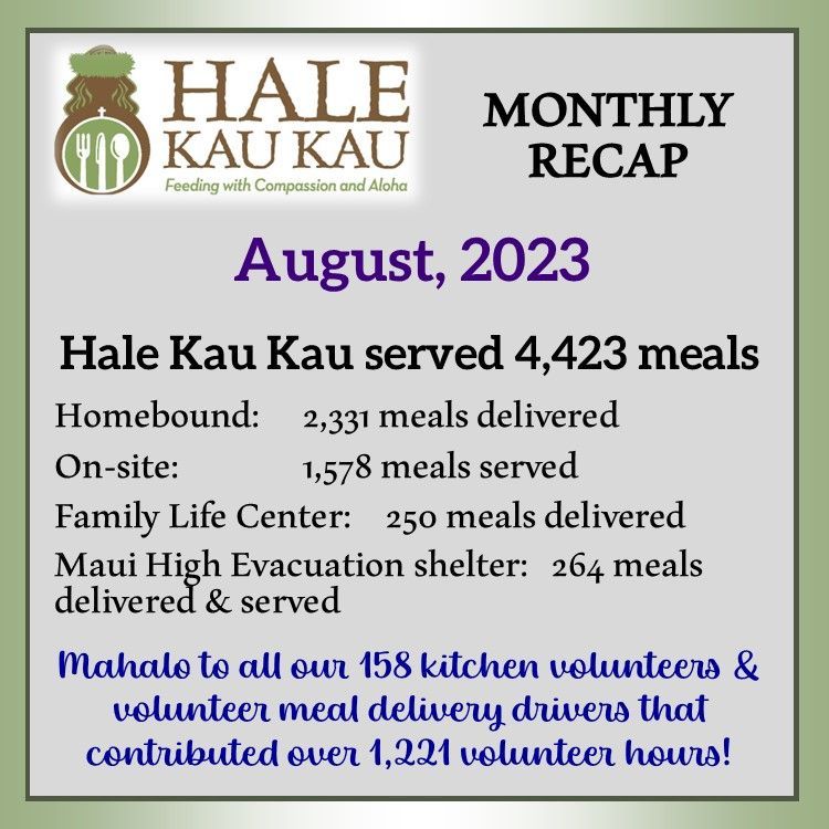 Hale Kau Kau offers a range of services to the South Maui Community intended to "Serve with Compassion and Aloha" we seek to connect with the Home Bound population as well as those in need, without discrimation.