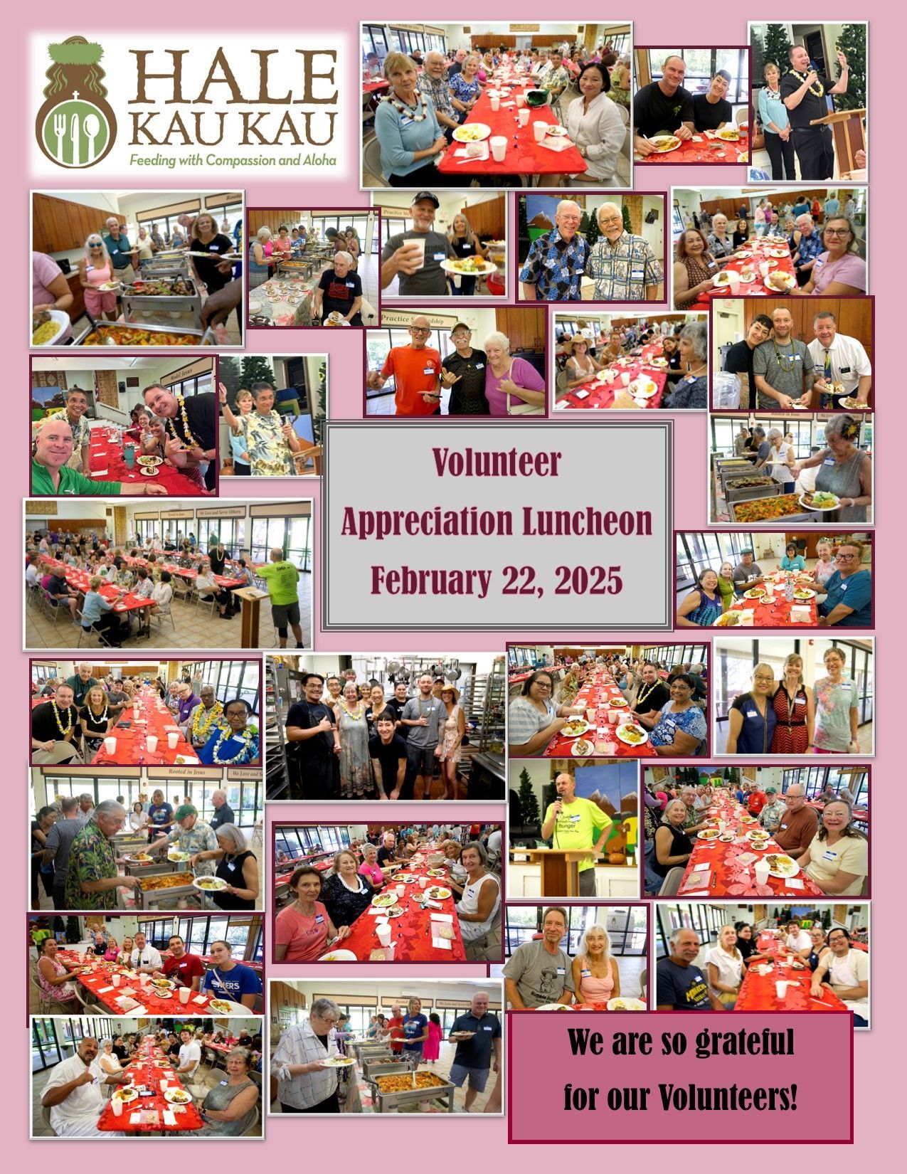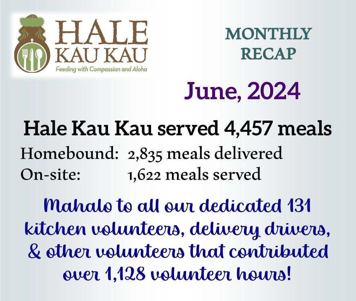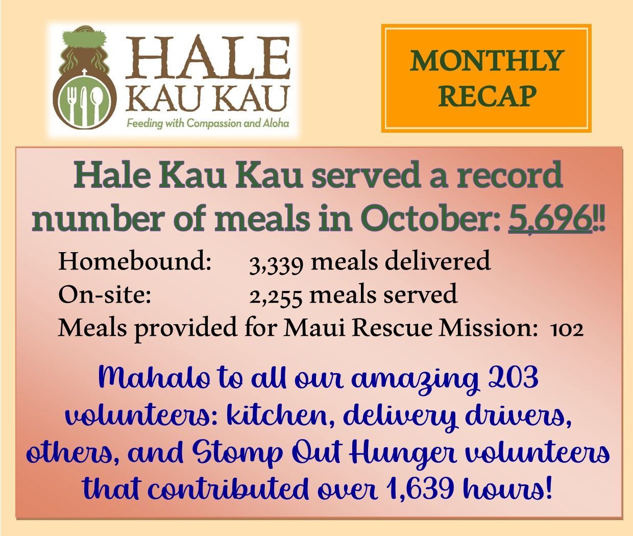Through the assistance of our volunteer drivers Hale Kau Kau delivers meals each afternoon to our Home Bound residents of South Maui. The meal consists of a hot entree, salad, vegetable, fruit, dessert, a bread, and an additional starch. Each meal is designed to provide approximately 1500 calories and address general nutritional needs.