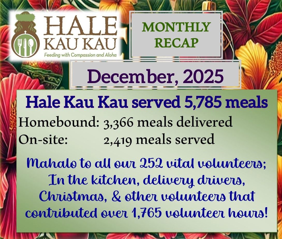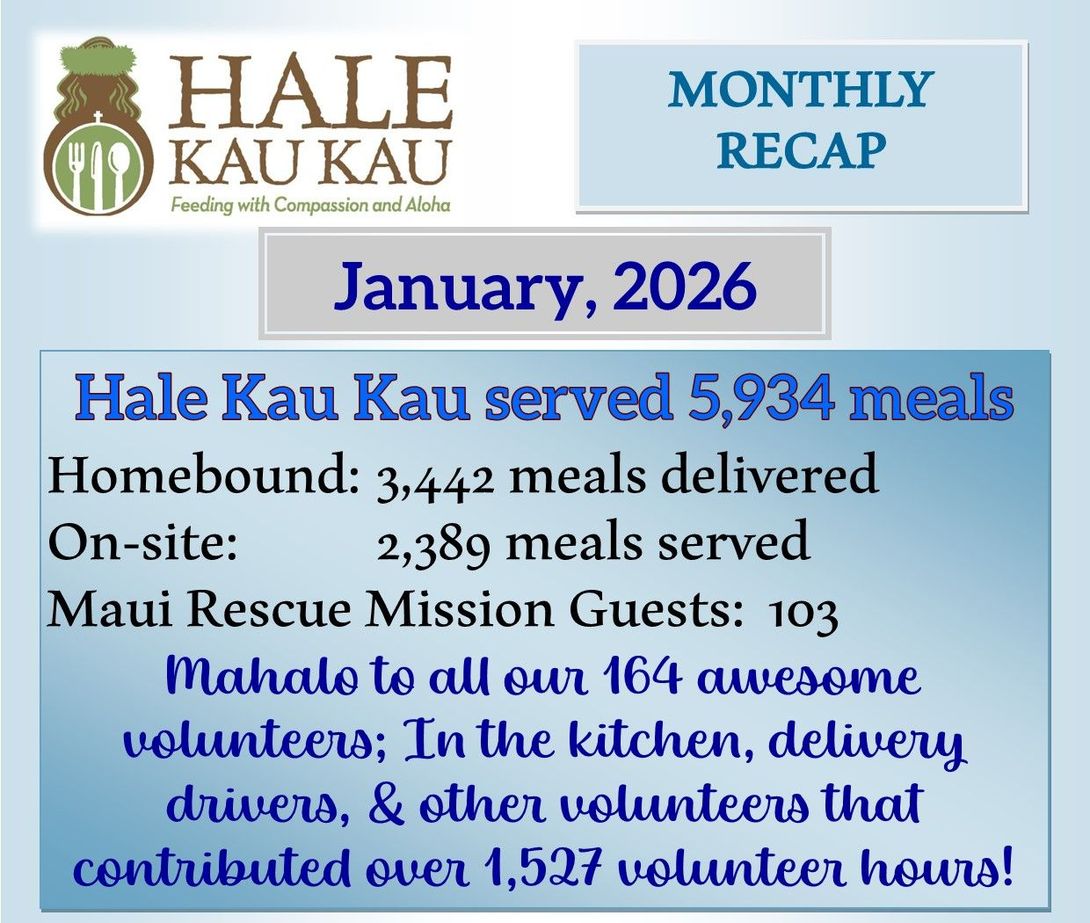 Hale Kau Kau offers a range of services to the South Maui Community intended to "Serve with Compassion and Aloha" we seek to connect with the Home Bound population as well as those in need, without discrimation.