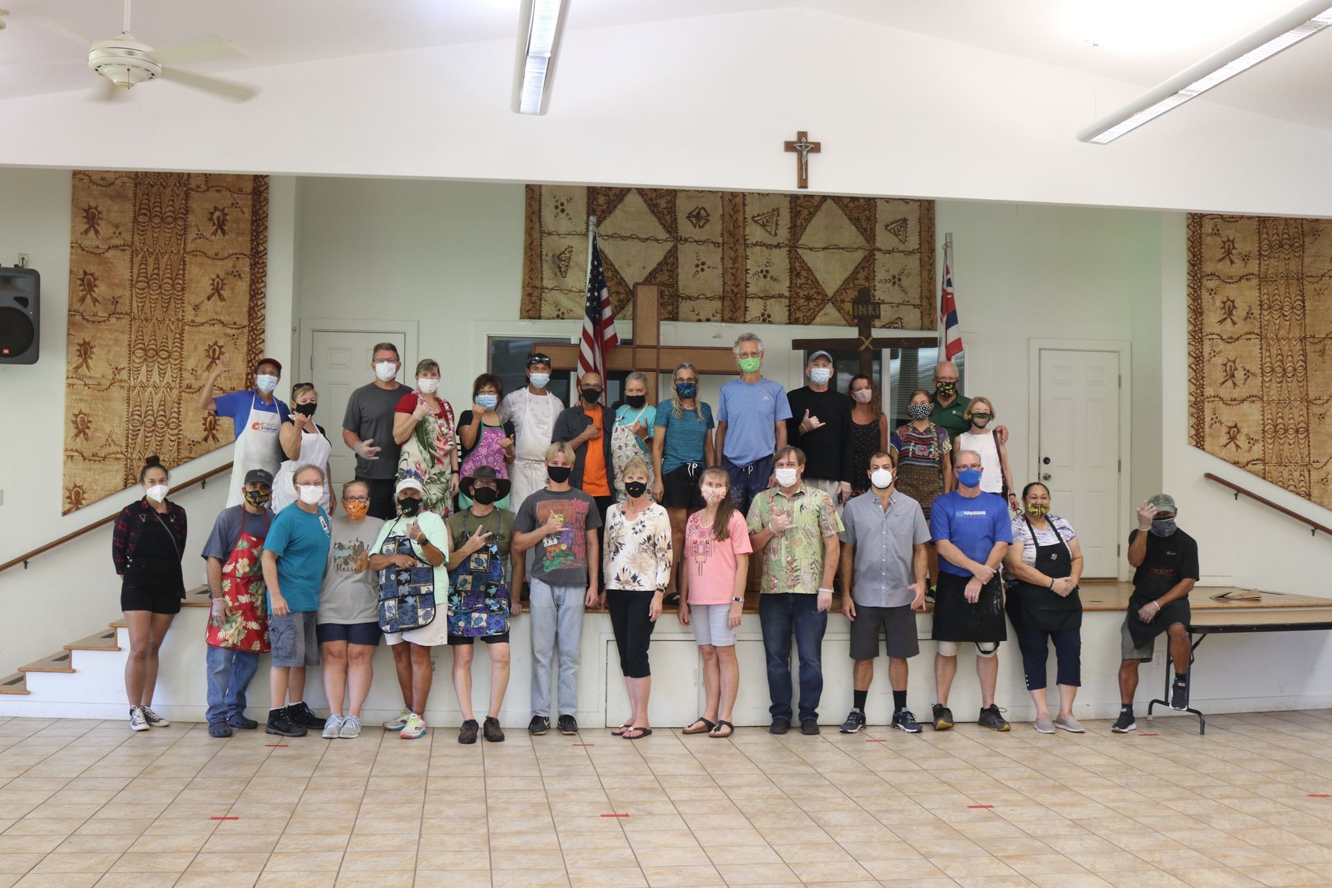 HALE KAU KAU celebrated its bountiful 2020 Thanksgiving lunch on Thursday, November 26th, with at least 232 South Maui residents—while maintaining CDC guidelines and safety protocols. Throughout the week, generous volunteers offered their time and talent by preparing roasted turkey, cranberry-apple stuffing, mashed potatoes, green bean casserole, fresh bread, and pumpkin pie with lots of whipped cream.